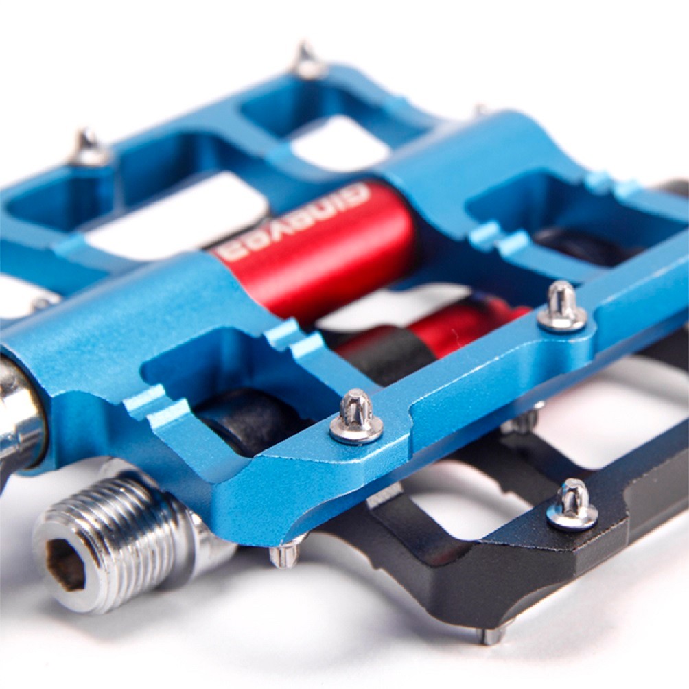 平踏有時被稱為平板腳踏,為腳提供了一個寬大、平坦的踩踏面。你可以穿普通的鞋子搭配這些腳踏使用,但許多平踏車手更喜歡穿有粘性橡膠鞋底的山地車鞋,以提高抓力。